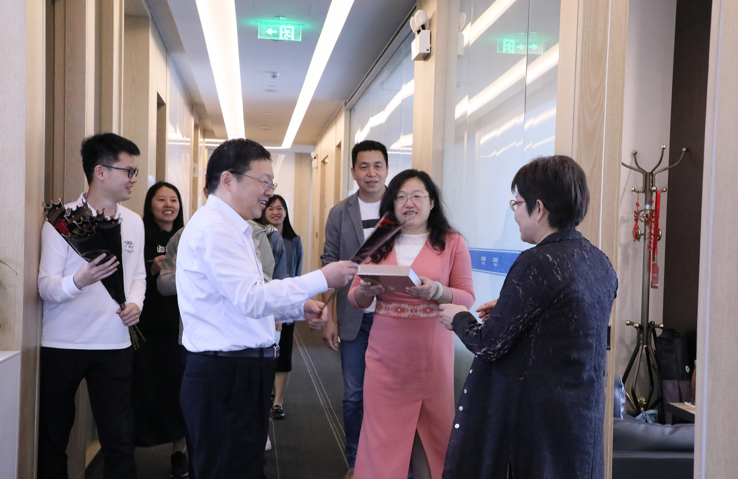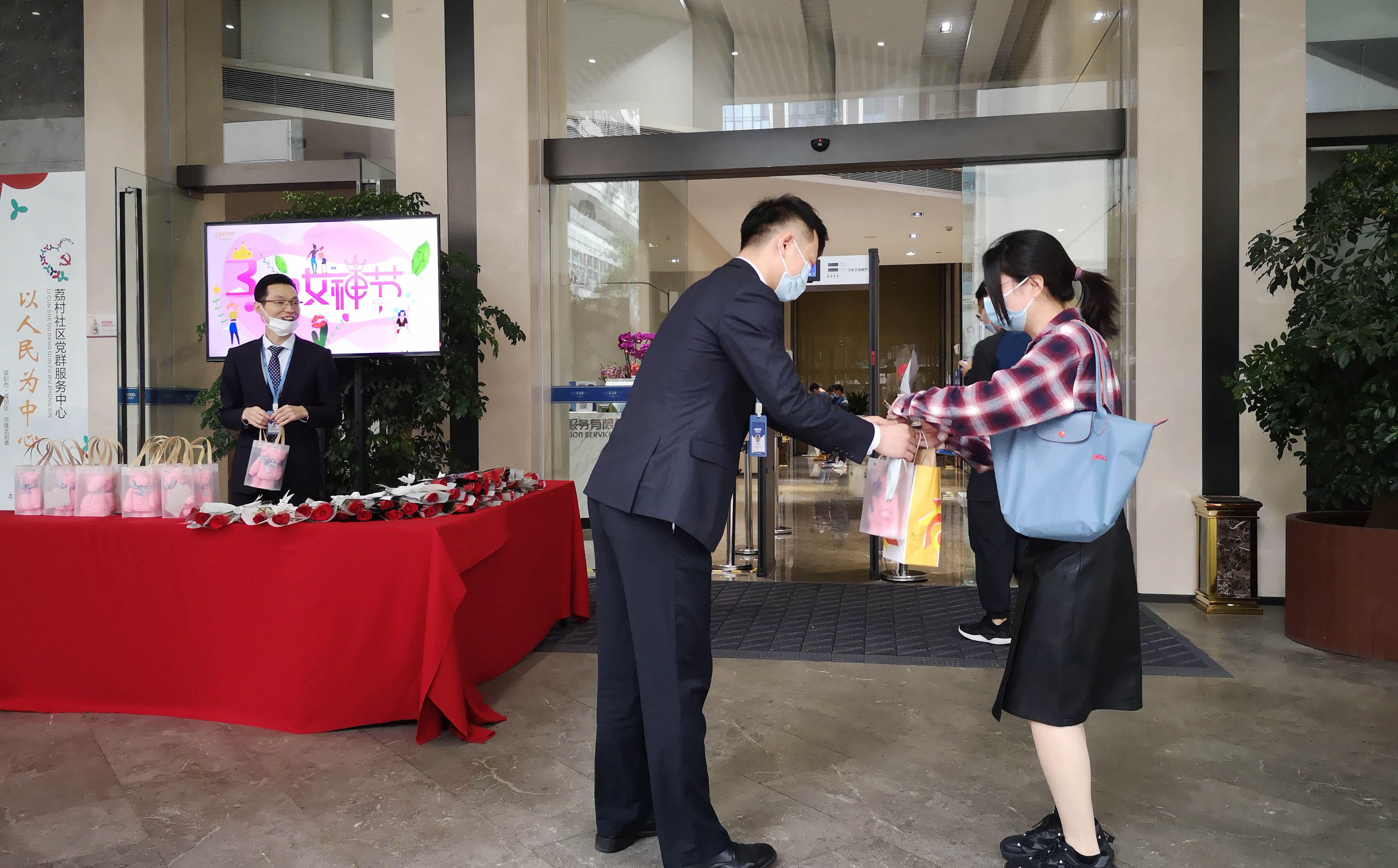 3月8日上午,中电信息总部工会组织开展“女神节送祝福”活动。副总经理陈雯海、纪委书记孙秀丽代表公司领导班子为总部在职女员工一一送上鲜花和节日礼品,并致以节日的美好祝愿。 ![]()