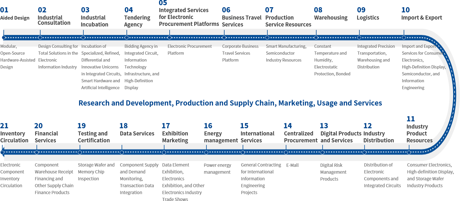 CECIS boasts a comprehensive industrial chain and supply chain service system in the electronic information sector. Through long-term resource integration and ecosystem development, it has established supply chain service platforms including the application innovation platform for the components industry, the industrial big data engine, the supply chain collaboration and support service platform, and the centralized procurement platform. CECIS has forged 21 specialized service capabilities in advanced manufacturing and an industrial innovation incubation system, providing customers with one-stop, full-process professional supply chain services in the electronic information industry. This supports the secure, stable, and high-quality development of industrial and supply chains.